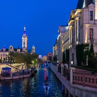 【威尼斯水城】位于大连东港商务区。水城以威尼斯城为蓝本,贯穿200多座欧式城堡,置身其中,恍如来到异国他乡,大连滨城的诗情画意,大连的极致浪漫在这里得到渲染。